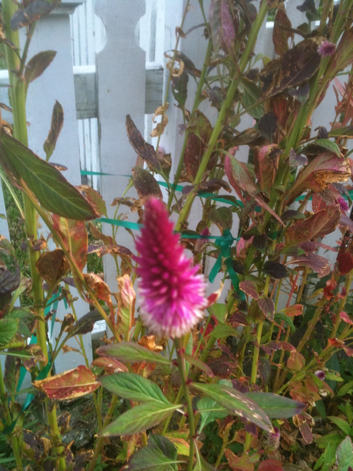 Photographed on N Olympia Street in New Orleans on 24 November, 2014 about 4:30 PM. Pretty white, magenta and red-violet accented floral stalks.