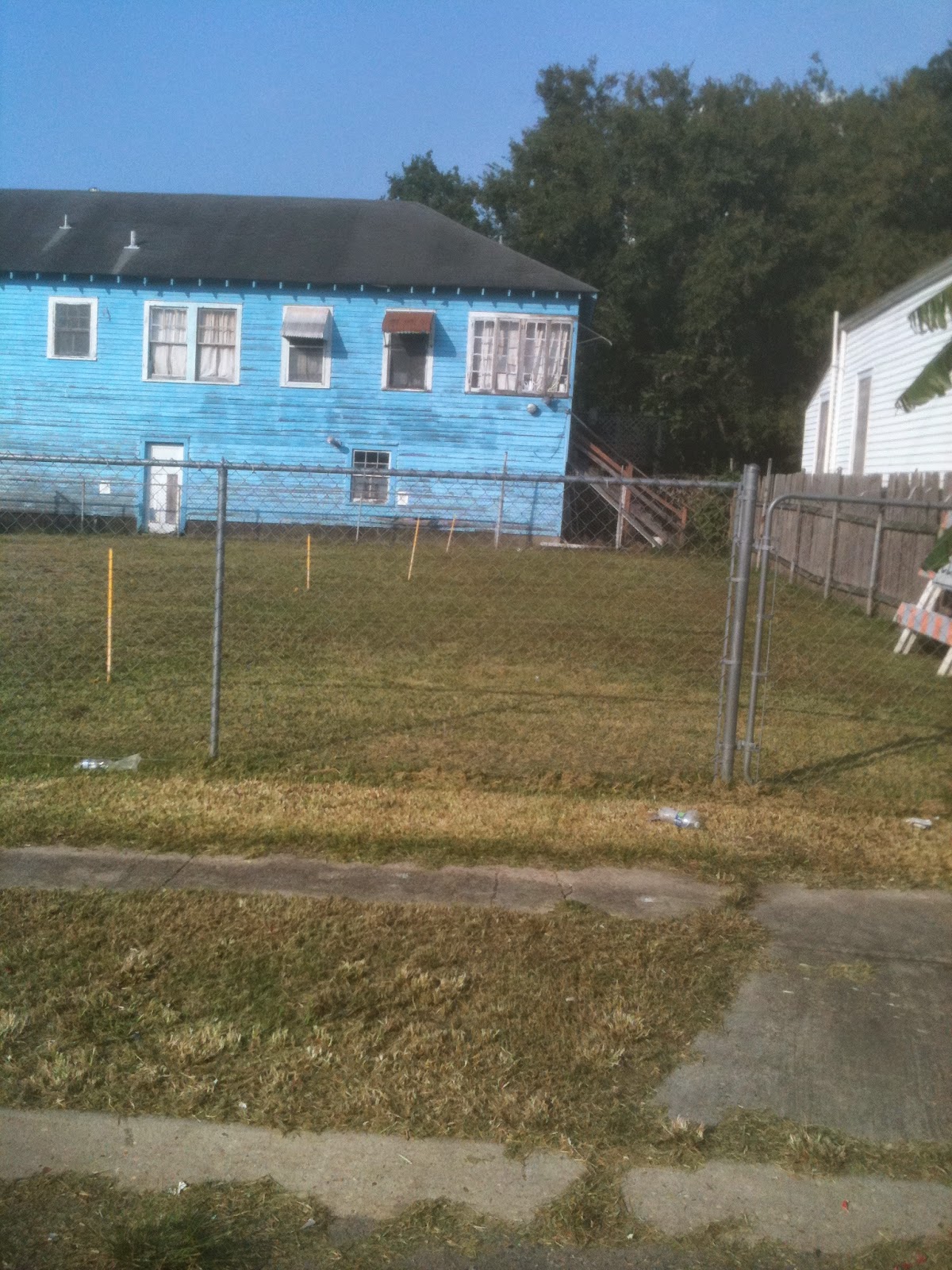 This whole entire city block, viewed from North Scott Street at Bienville Avenue, sat vacant for the longest time, even from before Katrina. Black Raspberry bushes with the most luscious berries grew up astride the fence around the perimeter.