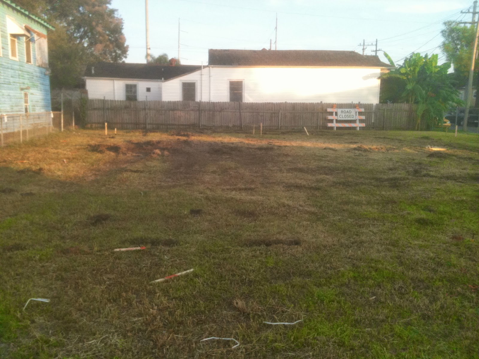 There is a vacant lot at 434-436 South Scott Street. It used to contain two single shotgun houses. Both of them got flooded after Katrina. Being rentals, they did not qualify for federal grant aid under the Louisiana Road Home program, so they sat and rotted for years. The one (#436) started leaning against the other, so it came down. A couple of years later, the other came down. The lot sat vacant and neglected for several years.